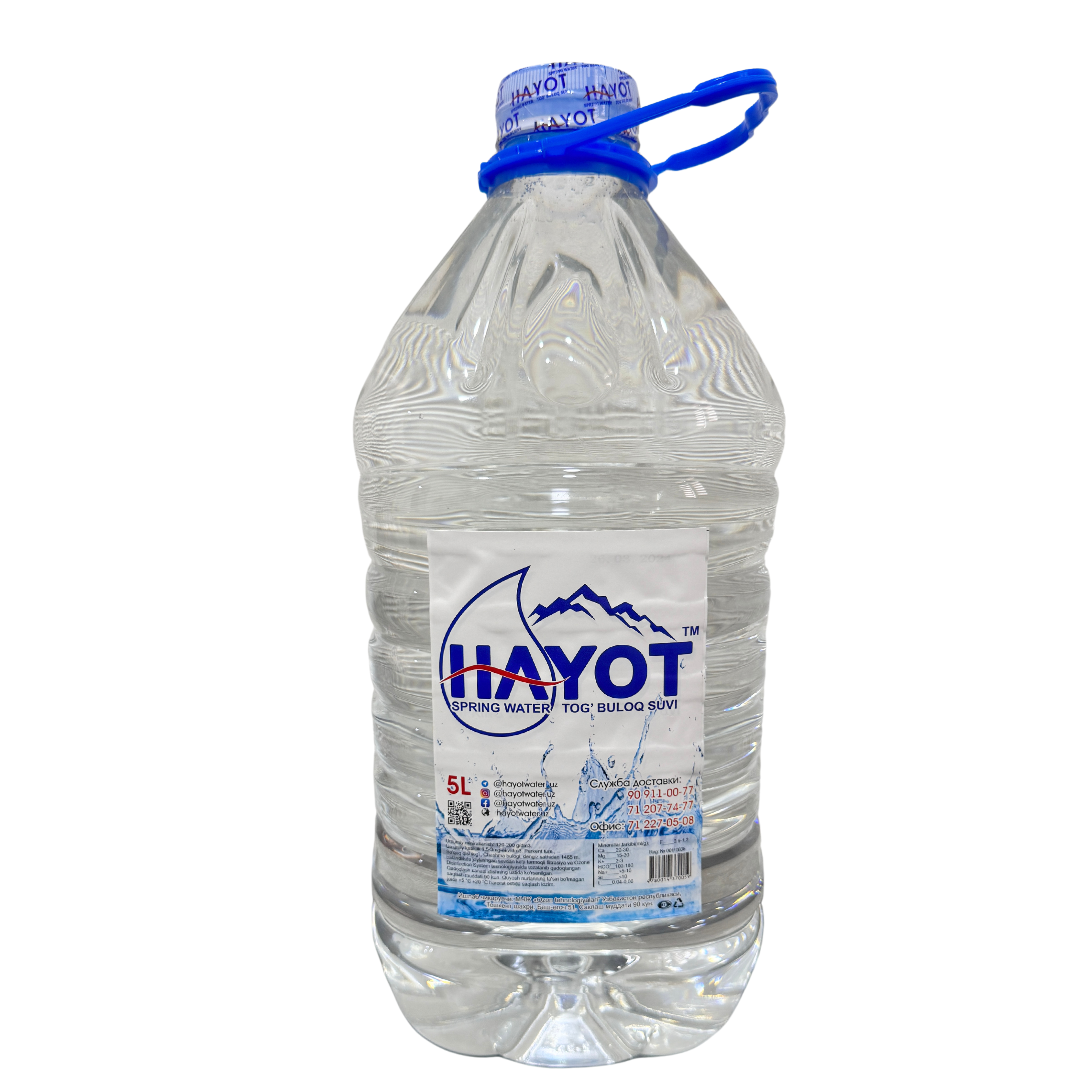 Наша вода - "HAYOT" Горная родниковая-разливается из высокорного источника "Чашма", расположенного в экологически чистой зоне Чаткальского биосферного заповедника.В силу географического расположения родника в высокогорной местности и ее происхождение- талая от снежных вершин гор, все это предопределяет его приятный вкус и сбалансированность необходимыми минералами. У подножия высокой горы оно ключем выбиваясь наружу и образуя речку стекает по горным вершинам к селу Сукок Паркентского района Ташкентской области. По легенде, название села Сукок также образована в честь этой воды, что означает в переводе с узбекского "Сув кук"- то есть "прозрачная вода".